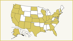 AK, AZ, CA, CO, CT, DE, FL, GA, ID, IL, IN, KS, KY, LA, MD, MO, NC, ND, NE, NH, NJ, NM, NV, NY, OH, OR, PA, RI, TN, TX, VA, WA, WI, & D.C.